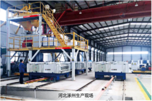 天意公司自主研發(fā)的大型攪拌設(shè)備配有自動配料系統(tǒng),結(jié)合材料的性能使料漿攪拌更均勻,能夠很好的融合在一起。料漿泵送系統(tǒng)更好的將攪拌好的料漿輸送到設(shè)備里面,澆注模式更簡單方便。發(fā)泡系統(tǒng)采用變頻發(fā)泡技術(shù),提高了發(fā)泡速度,節(jié)省了原材料,墻板成型機自動行走,產(chǎn)品成型速度高。
