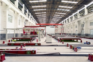PC構(gòu)件生產(chǎn)流水線采用現(xiàn)代工業(yè)做法,工作模臺(tái)流轉(zhuǎn)作業(yè),實(shí)現(xiàn)住宅預(yù)制構(gòu)件批量生產(chǎn),將傳統(tǒng)現(xiàn)澆工地大量立體分散的工作,轉(zhuǎn)移至工廠,大幅提高了功效,同時(shí)大量節(jié)省人工。