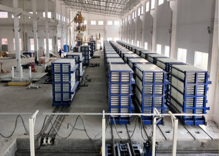 該復(fù)合墻板生產(chǎn)線立式旋轉(zhuǎn)臥式出板復(fù)合墻板成型機(jī),一次可生產(chǎn)四十塊墻板,該生產(chǎn)線主要分為:配料攪拌系統(tǒng)、墻板成型系統(tǒng)、液壓整體開模系統(tǒng)、液壓翻轉(zhuǎn)系統(tǒng)、整體出板翻轉(zhuǎn)碼垛系統(tǒng)、成型機(jī)自動(dòng)循環(huán)系統(tǒng)、變頻擺渡系統(tǒng)、數(shù)控配電系統(tǒng)等部件 組成。該生產(chǎn)線自動(dòng)化程度高,液壓開合模,解決了傳統(tǒng)立式復(fù)合墻板機(jī)人工開合安全隱患,提高了工作效率。設(shè)備配有整體出板碼垛系統(tǒng),解決了傳統(tǒng)人工出板方式,減少產(chǎn)品的破損率,提高了產(chǎn)能。生產(chǎn)線使用密封式泵送系統(tǒng)配備雙工位注漿槍,注漿速度快密實(shí)度高,材料粘結(jié)更緊密。